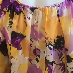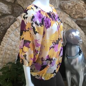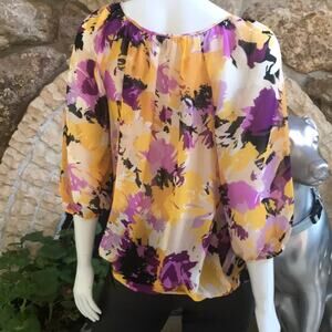 Ellen Tracy 3/4 Sleeve Peasant Blouse Yellow Purple Women's Size Medium