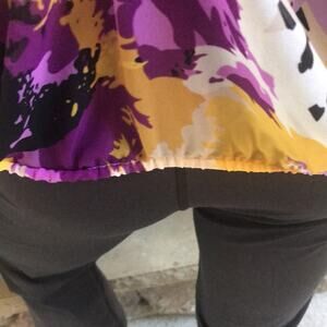 Ellen Tracy 3/4 Sleeve Peasant Blouse Yellow Purple Women's Size Medium. Measurements: bust:21, length: 26