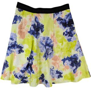 Ellen Tracy A Line Skirt Womens 8 Blue Watercolor Floral Flared Modern Lined