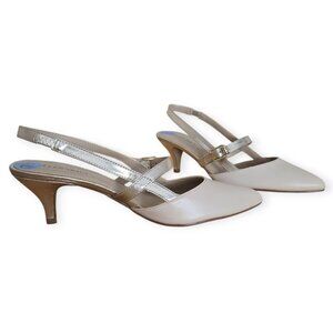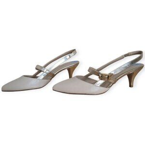 Ellen Tracy Bailey Beige Gold Slingback Kitten Heel Pump 7.5