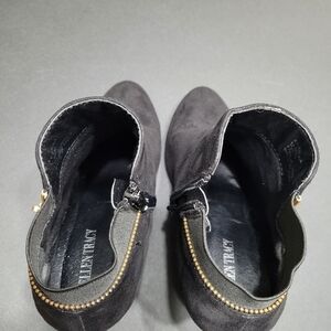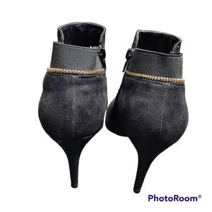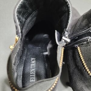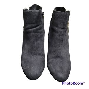 Ellen Tracy Black Faux Suede Side Zip Detail Retro Ankle Booties Size 7.5M