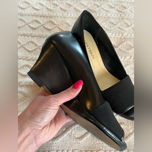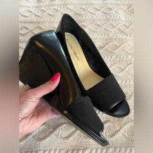 Ellen Tracy Black Leather 3 inch Skinny Wedge Heels Women’s Size 9