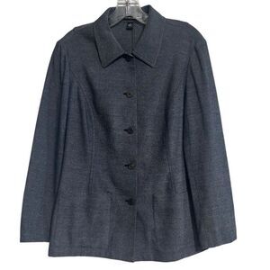 Ellen Tracy Blazer Jacket Womens Sz 12 Black Gray Twill Button Front Long Sleeve
