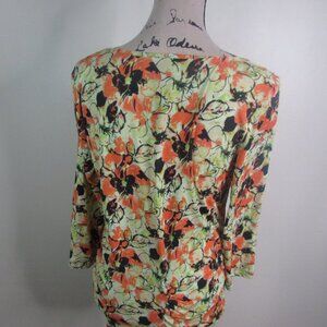 Ellen Tracy Blouse M Floral 3/4 Sleeve