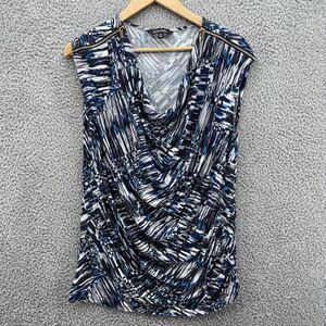 Ellen Tracy Blouse Womens XL Blue Geometric Sleeveless Pullover Stretch Top
