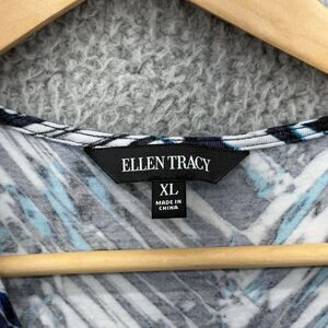 Ellen Tracy Blouse Womens XL Blue Geometric Sleeveless Pullover Stretch Top. Pre-Owned. Good Condition. See Photos for Accurate Representation. Measurements are Approximate.