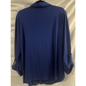 Ellen Tracy Blue Career Blouse Gold Button Down SZ XL