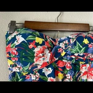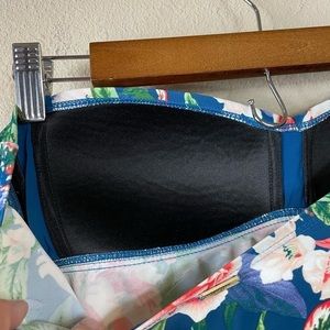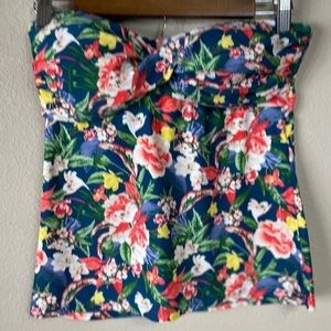 Ellen Tracy Blue Floral Strapless Padded Tankini Swim Top, Sz 8.