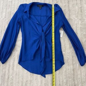 Ellen Tracy Blue Tie Front Blouse Size Small (NWT)
