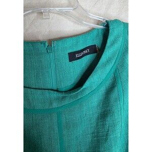 This beautifully tailored Ellen Tracy sheath dress offers a classic, timeless silhouette in a striking blue-green hue. Designed with clean seaming, a fitted bodice, and a modest knee-length hem, this piece is characteristic of Ellen Tracys early-mid 2000s career collection styles (approximately 2002-2008). Perfect for work, events, or polished everyday wear.