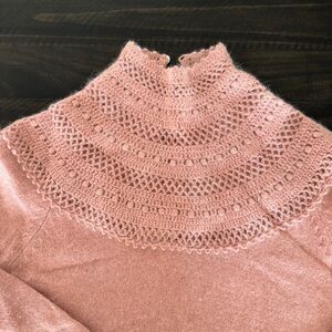 Ellen Tracy Blush Pink Sweater with Crochet Collar - Size Medium - Lambs Wool