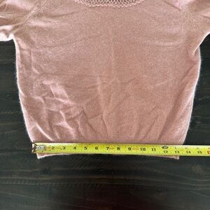 For sale is a beautiful Ellen Tracy blush pink sweater in size M. This elegant piece features a unique crochet lace collar with delicate detailing, adding a touch of sophistication. Made from a luxurious blend of 70% lambswool, 20% angora rabbit hair, and 10% nylon, this sweater offers a soft, cozy feel perfect for cooler days.