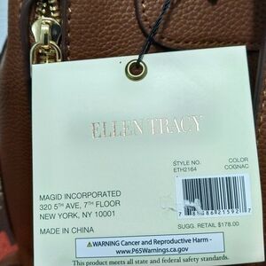 Stylish brown backpack by Ellen Tracy. Features a sleek design with gold accents. Perfect for everyday use.
