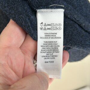 Ellen Tracy Cape Sweater 100% Merino Wool Navy Cowl Neck Buckle asymmetrical SzL