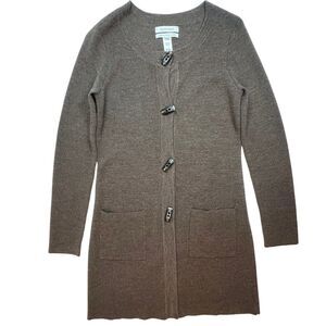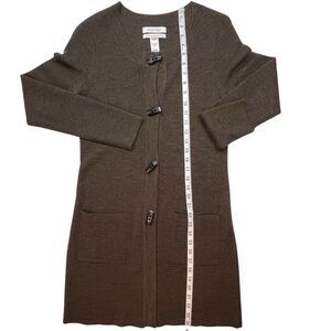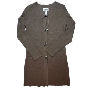 Ellen Tracy Cardigan Womens Medium Brown Merino Wool Long Button Front Sweater