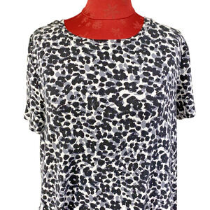 Ellen Tracy Casual Dress Black Gray Short Sleeve Size XL Cheetah Animal Print