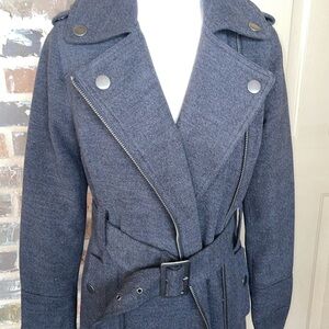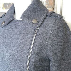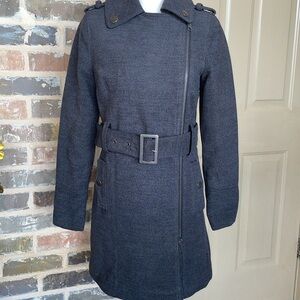 Ellen Tracy Charcoal Military Trench Overcoat Side Full Zip Belted Pea Coat Sz M