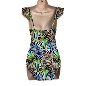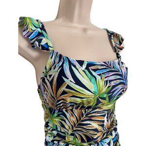 Ellen Tracy Colorful One Piece Swimsuit Size 8 Ruffle Adjustable Straps NWOT Pad