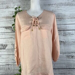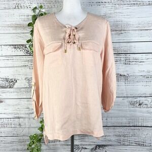 Ellen Tracy Company Tunic Blouse Large Peach Linen Sailor Beach Modest Church