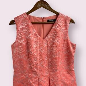 Ellen Tracy Coral Floral Jacquard Dress Size 10 Metallic