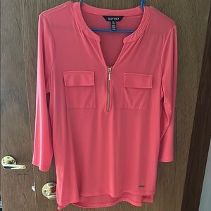 2 Ellen Tracy tops. Perfect for any occasion, they feature a stylish design with a comfortable fit. Ideal for pairing with your favorite jeans or skirt. Both have unique zippers
