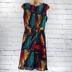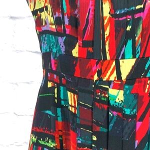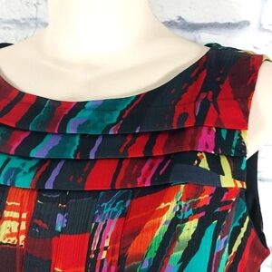 Ellen Tracy Dress Sleeveless w Pleats Artsy Vivi Colors Sz 4