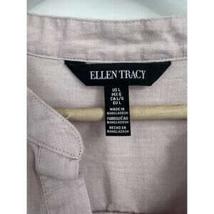 Ellen Tracy Dusty Pink V Neck TunicLength 100% Linen Blouse Large