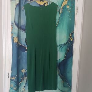 Sophisticated green midi dress. Features a gathered waist detail. Ideal for elegant occasions.