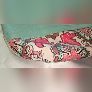 Ellen Tracy Faux Leather Tote Shoulder Bag Purse Turquoise With Floral Trim