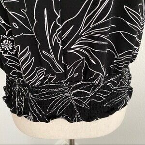 Ellen Tracy Floral Abstract Black White Pattern Sleeveless Rouche Sexy Size S