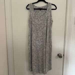 Ellen Tracy Floral Leaf Gray Midi Lounge Tank Dress, Size M