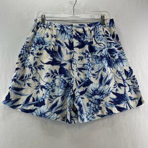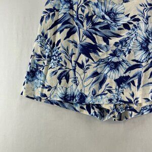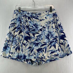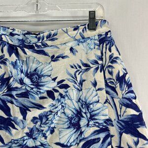Ellen Tracy Floral Linen Blend Skort Size M Elastic Waistband Pockets White Blue