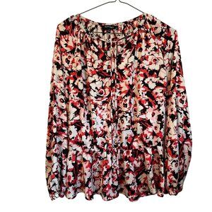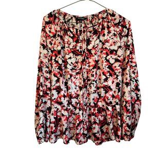 Ellen Tracy Floral Long-Sleeve Blouse Lightweight & Vibrant Womens Size L blouse