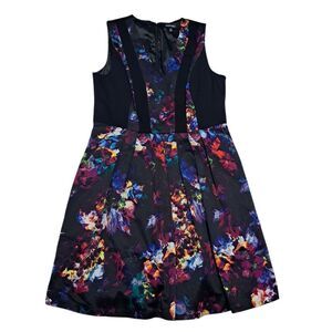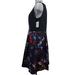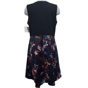 Ellen Tracy Floral Print Office Party Casul A-Line Dress Black Multi Size 14 NWT