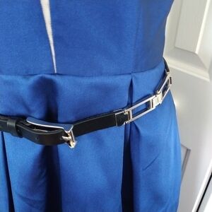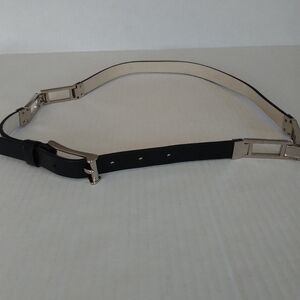 Ellen Tracy Genuine Leather Black & Silver Belt M