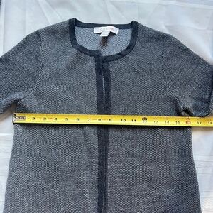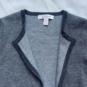 Ellen Tracy Gray Merino Wool Blend Knit Minimalist Luxury Cardigan Jacket