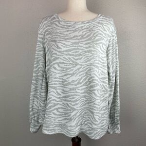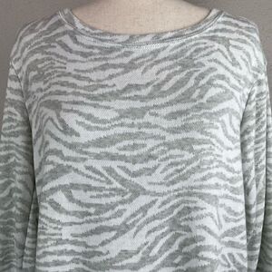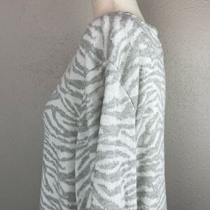 Ellen Tracy Gray and White Tiger Stripe Design Sweater Size L EUC