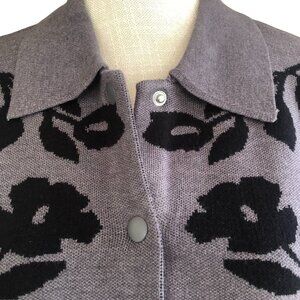 Ellen Tracy Grey Black Floral Knit Cardigan Sweater Jacket Snap Front M NWT
