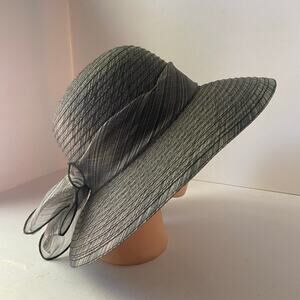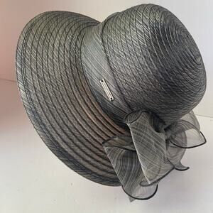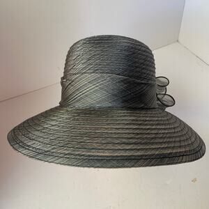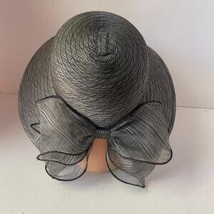 Ellen Tracy Hat Bow Wide Brim Sun Church Funeral Bow Women Fancy Lace