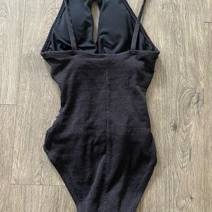 Ellen Tracy High Neck Key Hole One Piece black swimsuit medium 8 slimming sexy