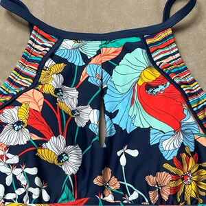 Ellen Tracy High Neck Keyhole Navy with Floral Tankini Top Size 8