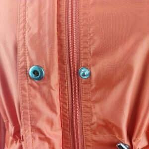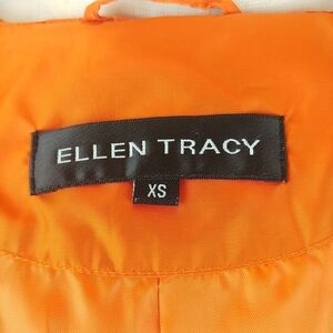 Ellen Tracy Hooded Rain Jacket XS Orange Full Zip Hip Length