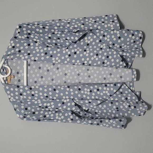 Ellen Tracy Jacket women's size medium Blue light and dark and White Circles round pattern coverup topper comfy comfort comfortable look polished by a great manufacturer without the hassle of discomfort 5% stretch