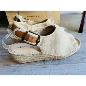 Ellen Tracy Kameo Wedge Espadrille Sandal Slingback Open Toe Designer Natural 9