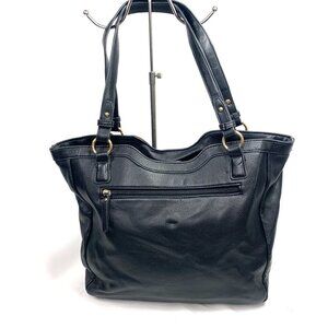 Ellen Tracy Large Tote Shoulder Bag Black Vegan Leather 16"W x 11.5"H x 5.5"D