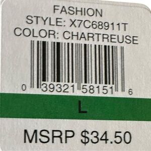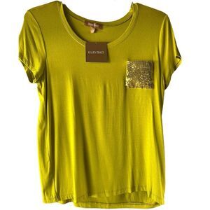 Ellen Tracy Lime Green Classic Tee with Gold Sequin Pocket Detaling Size Large