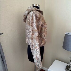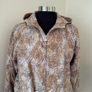 Ellen Tracy Linda Allard Paisley Patterned Jacket Wool Blend Zip Front With Hood