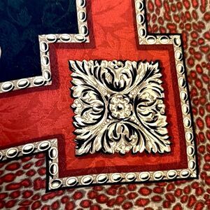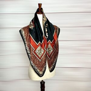 Ellen Tracy Linda Allard Silk Jacquard Cheetah Scarf Black Red Beige Vintage