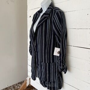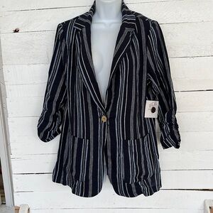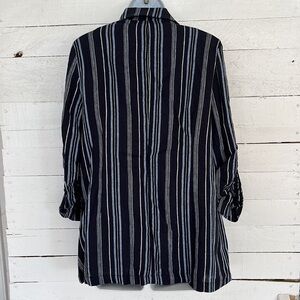 This cute blazer will dress up any outfit! Super soft and lightweight. Pit to pit measures 19”. Pit to bottom hem measures 18.5”. Navy blue. Non smoker home.