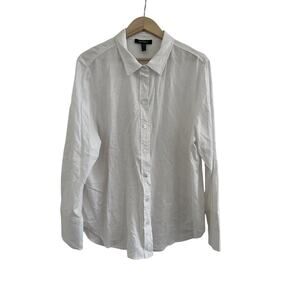 Ellen Tracy Linen Blend Button Down Shirt Womens Size XL White